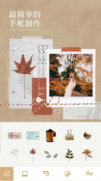 贴纸:丰富的剪贴画、胶带、手绘图案等拟真素材滤镜:胶片、拍立得复古风格调色滤镜